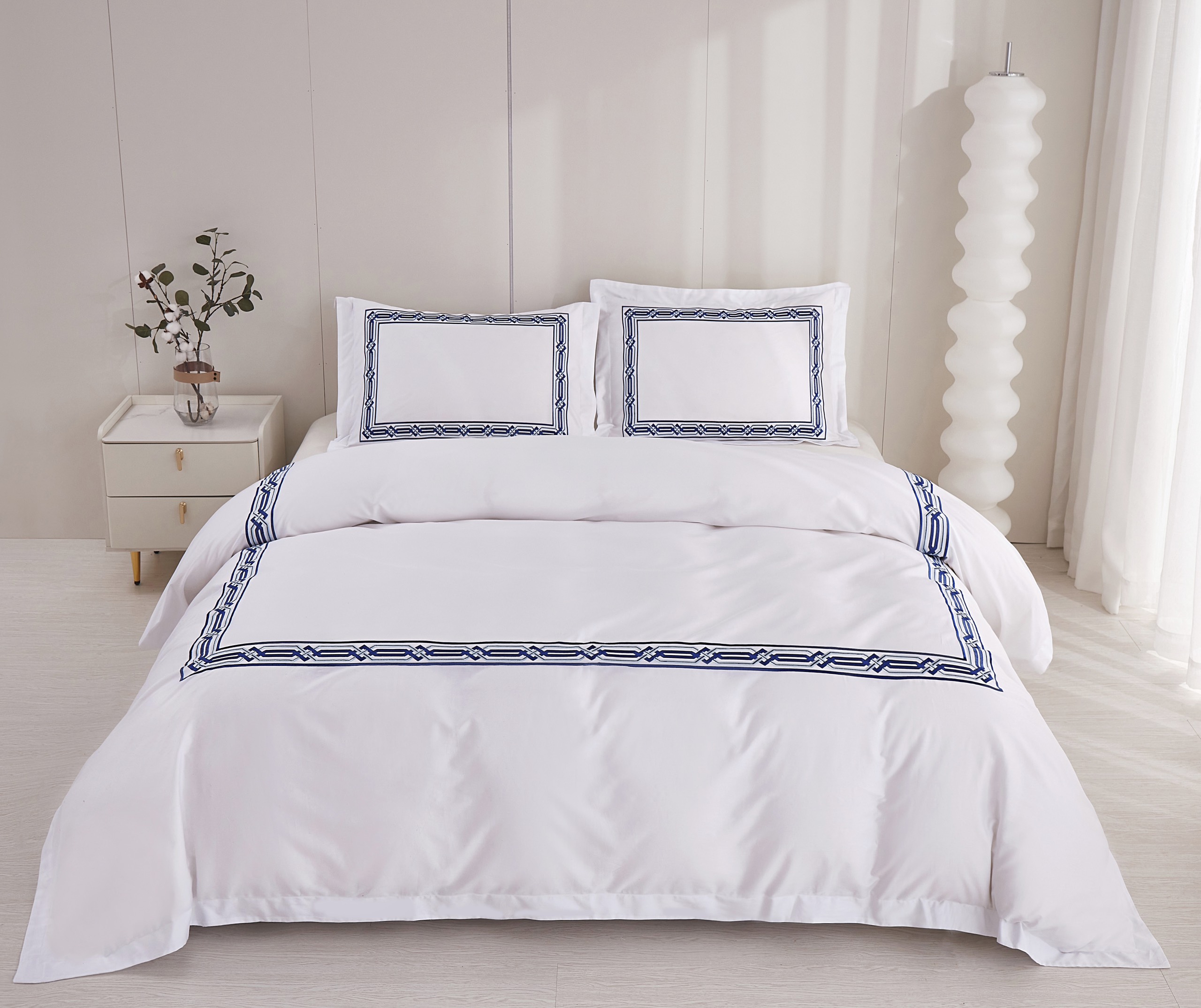 ✨Bộ chăn ra Casa Bello Home - Set Serenity Blue Cotton lụa satin thêu họa tiết thêu 5 món
