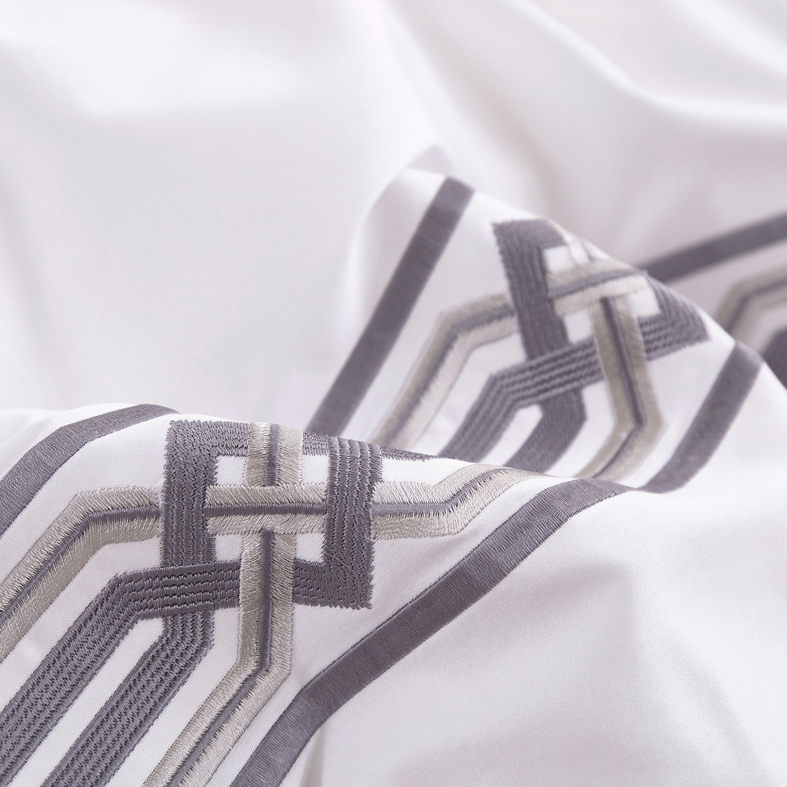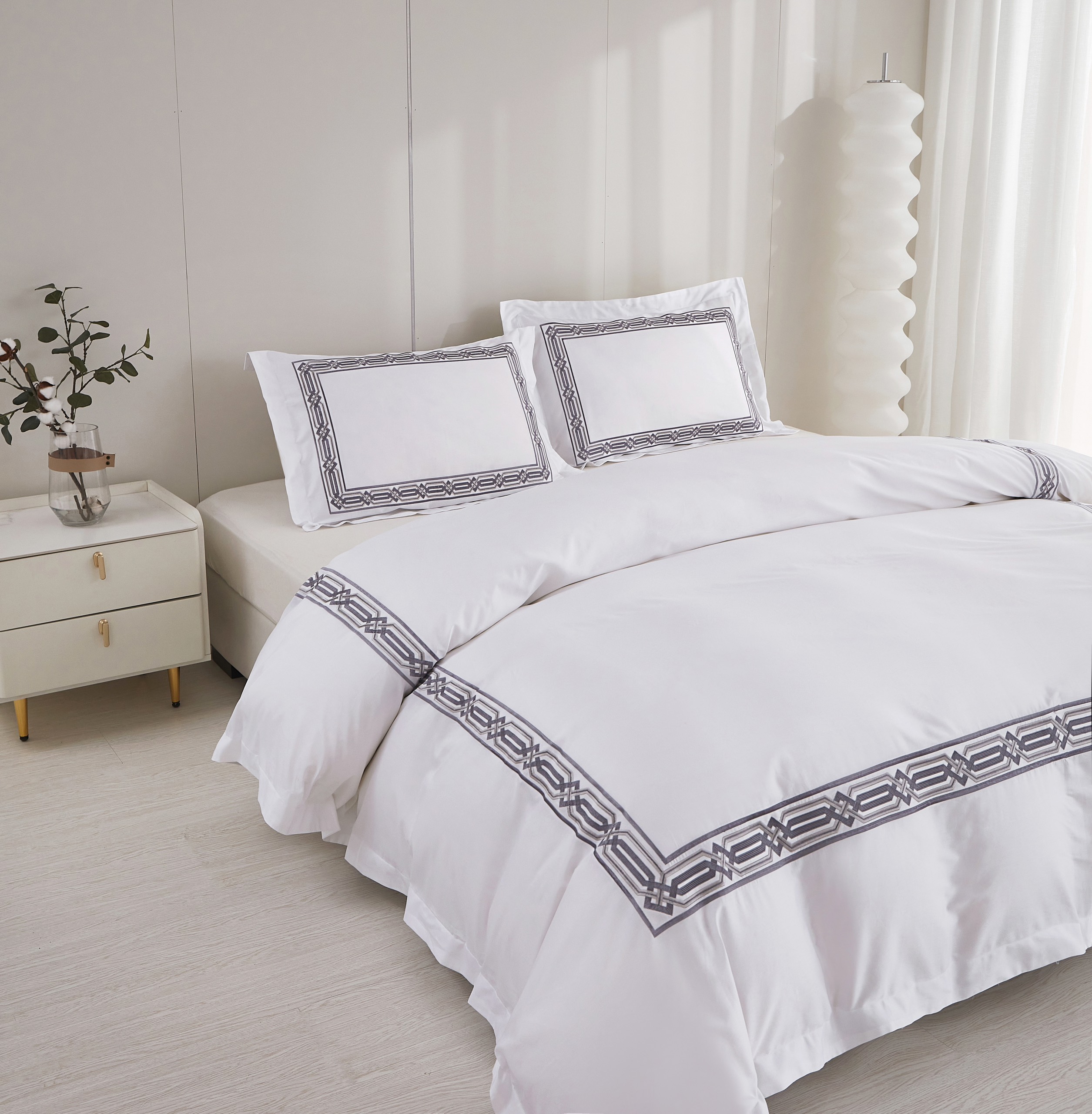 ✨Bộ chăn ra Casa Bello Home - Set Serenity Grey Cotton lụa satin thêu họa tiết thêu 5 món