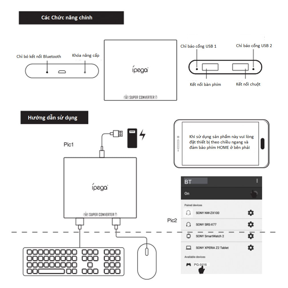 Mua tại TiktokBộ chuyển đổi bàn phím và chuột Ipega PG- 9116 Bluetooth 4.0 Trên Điện Thoại Di Động Hàng Nhập Khẩu Mô tả sản phẩm