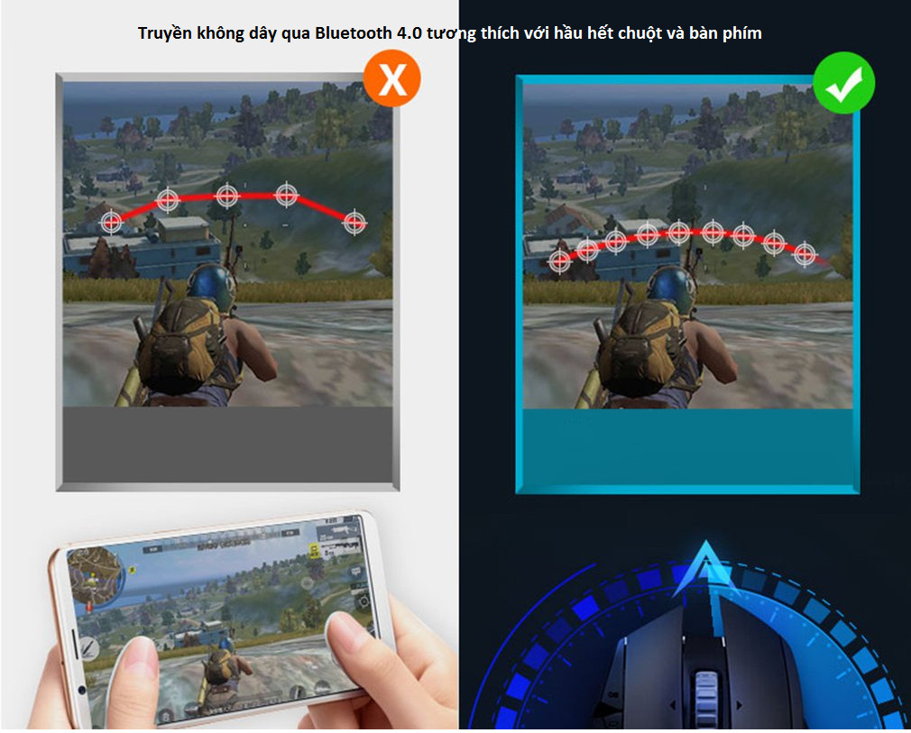 2. bluetooth 4.0 kết nối, hỗ trợ hầu hết các trò chơi trực tuyến và FPS trò chơi, chẳng hạn như cho PUBG, Dao Ra, fortnite, vv.