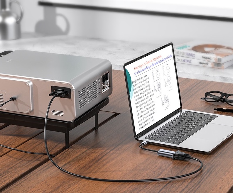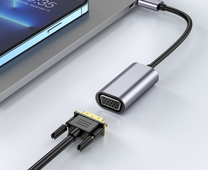 Chất liệu: Hợp kim nhôm + ABS, Kích thước: 4523.713.8mm; trọng lượng: 15g Chiều dài dây: 130mm ± 4mm Giao diện: Type-C male to VGA Female Độ phân giải: 1080P (1920*1080 @ 30hz) giao diện VGA mở rộng