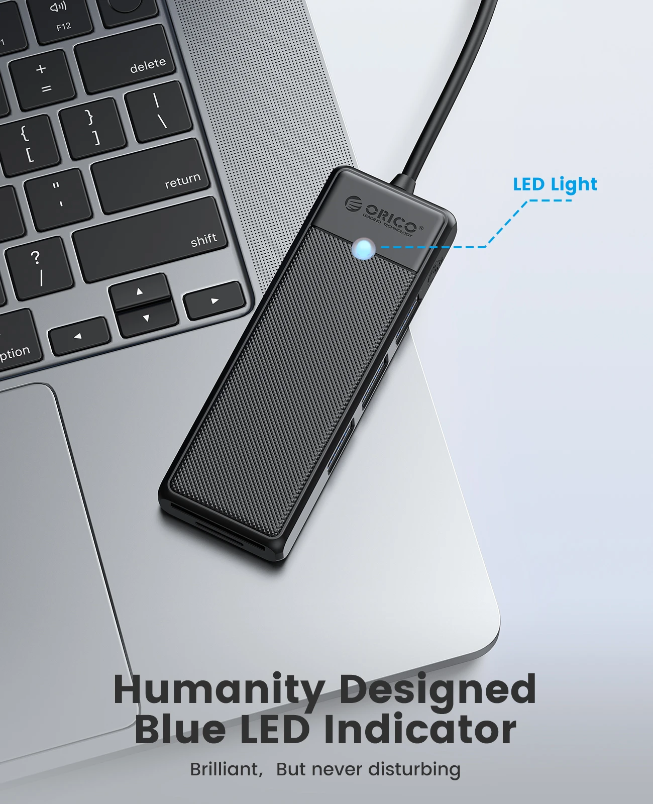 Hub đa năng 5 in 1 cổng Type-C ORICO PW11-5P-GY - Đầu vào (input): Type-C. - Đầu ra (output): 1 cổng USB 3.0 (5Gbps), 2 cổng USB 2.0 (480Mbps), 1 cổng sạc 60W, 1 cổng