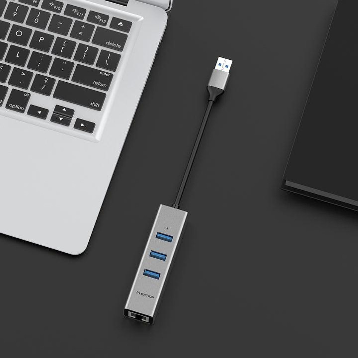 Bộ chuyển đổi USB-A 4 trong 1 Lention H23s - USB3.0*3 Ports truyền dữ liệu lên đến 5Gbps - Cổng lan Gigabit Ethernet(100M) có đèn led báo kết nối Trọng lượng: 81g Chiều dài cáp: