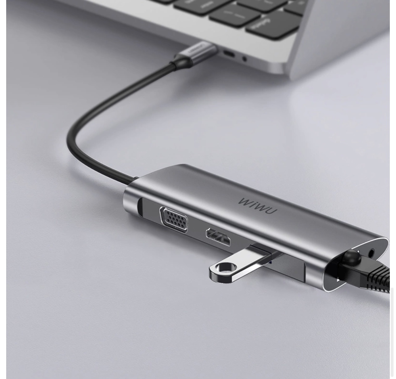 THÔNG TIN CƠ BẢN - Thương hiệu: WiWU - Model: Wi-A721HD - Năm sản xuất: 2025 - Loại hub : Hub 7 trong 1 - Kích thước: 11.5 x 4.4 x 1.4 cm - Khối lượng: 73 gram - Chất liệu: Hợp kim