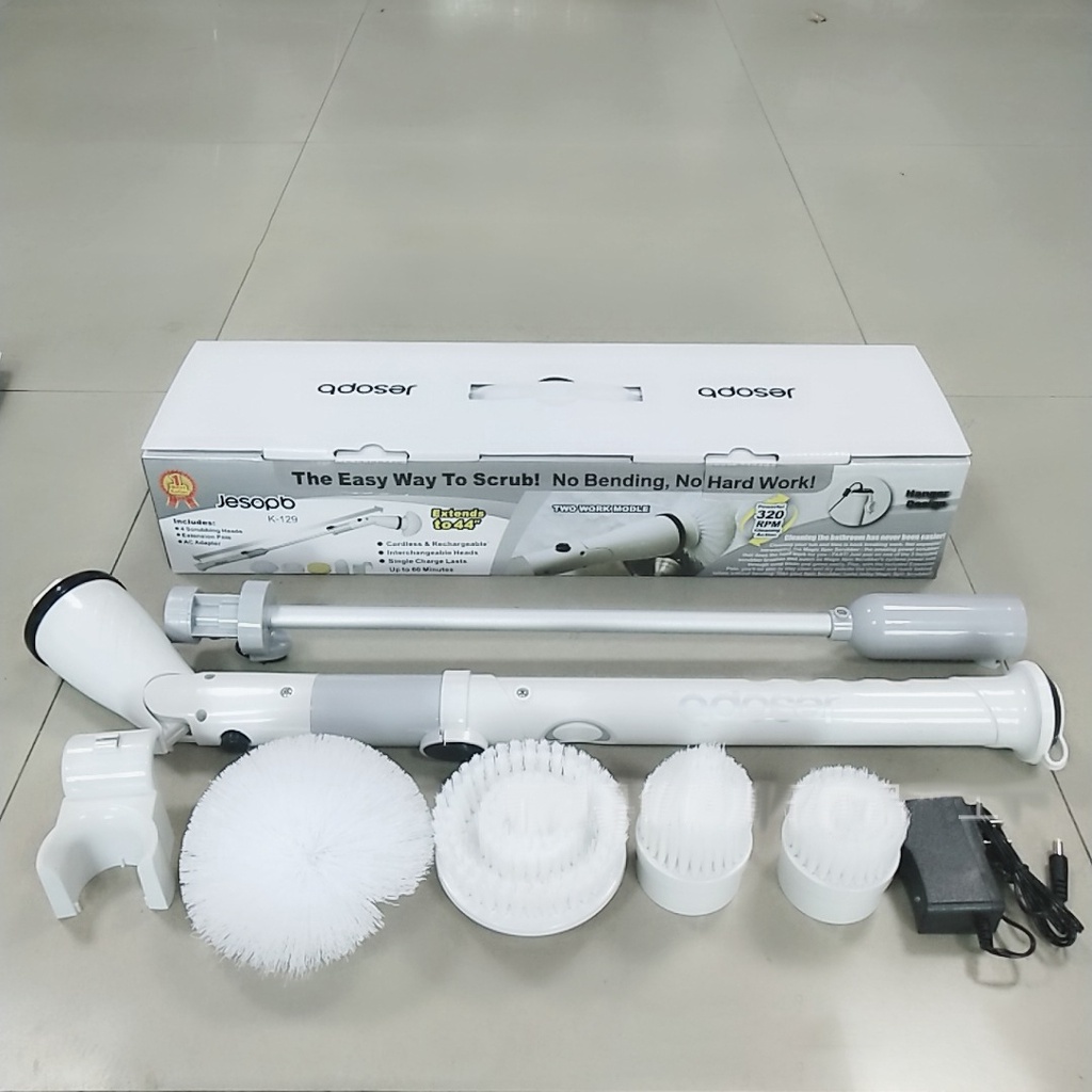 Chổi điện cọ nhà vệ sinh đa năng JESOPB dài tối đa 1m, tặng kèm 4 đầu thay thế tiện dụng, vệ sinh nhà cửa toilet đa năng tiết kiệm thời gian sức lực cho
