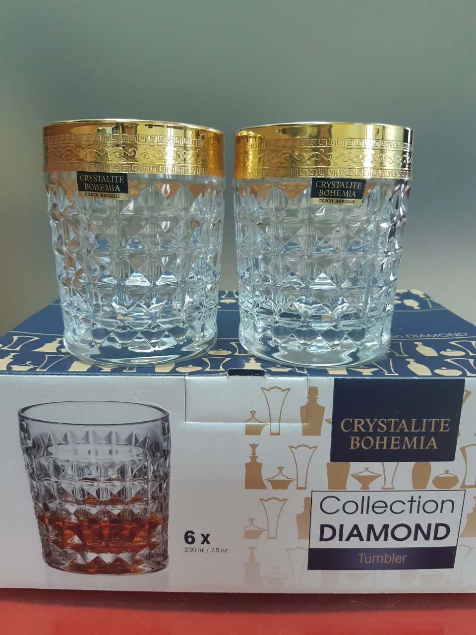 BỘ CỐC DIAMOND 230ML XUẤT XỨ: CỘNG HÒA CZECH THƯƠNG HIỆU: CRYSTAL BOHEMIA DUNG TÍCH: 230ML ( 420G / C 81X81X100MM )