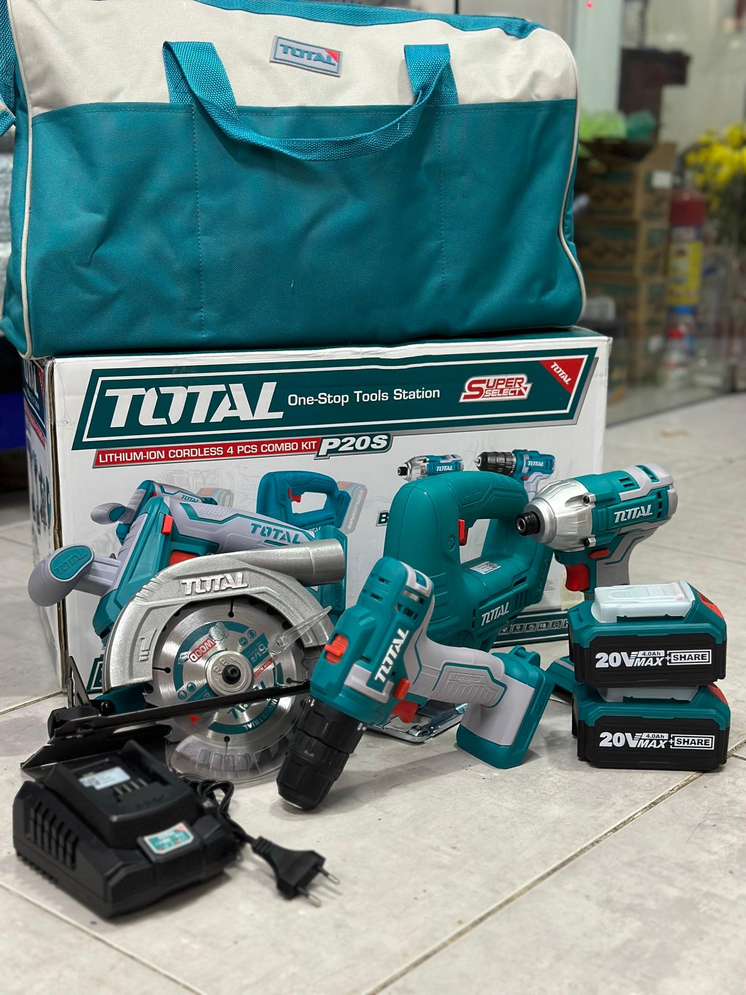 ✨BỘ COMBO 4 MÁY GỒM CƯA ĐĨA TRÒN , CƯA LỌNG , SIẾT VÍT VÀ KHOAN DÙNG PIN LITHIUM 20V (2 pin 4Ah và 1 sạc) TOTAL TCKLI20104 - HÀNG CHÍNH HÃNG