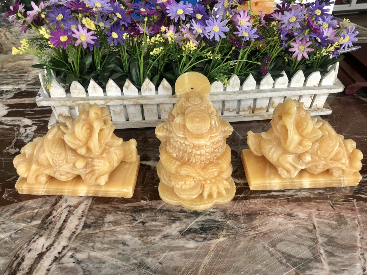 ✨Bộ combo Tỳ Hưu dài 15cm và Tượng Cóc Ba Chân, Cóc Ngậm Tiền, Thiềm Thừ phong thủy dài 15 cm đá ngọc hoàng long