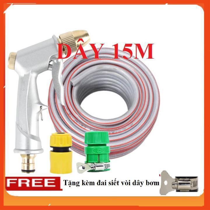 ✨Bộ dây vòi xịt nước rửa xe, tưới cây . tăng áp 3 lần, loại 15m 206701 đầu đồng,cút+tặng đai