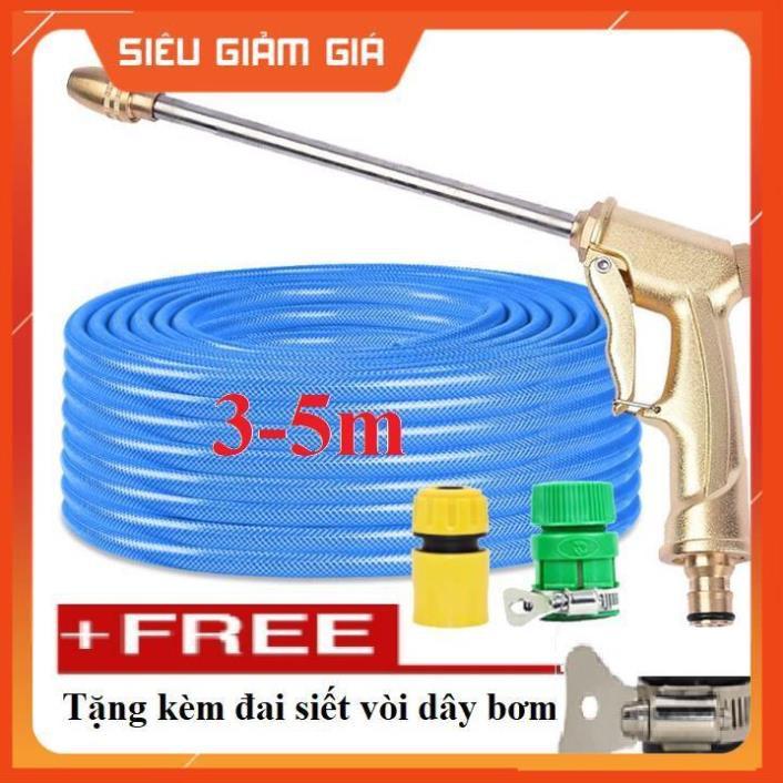 ✨Bộ dây vòi xịt nước rửa xe, tưới cây . tăng áp 3 lần, loại 3m, 5m 206701-3 đầu đồng,cút nối nhựa vàng+ tặng đai