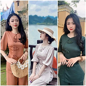 Đồ Lam Đi Chùa # Nhật Nơ Phối Vải Cao Cấp # Quần Áo Nữ # Đồ Bộ Nữ  Đồ Lam Đi Chùa # Xéo Tim 3Nút Vải LiNen # Quần Áo Nữ # Đồ Bộ Nữ