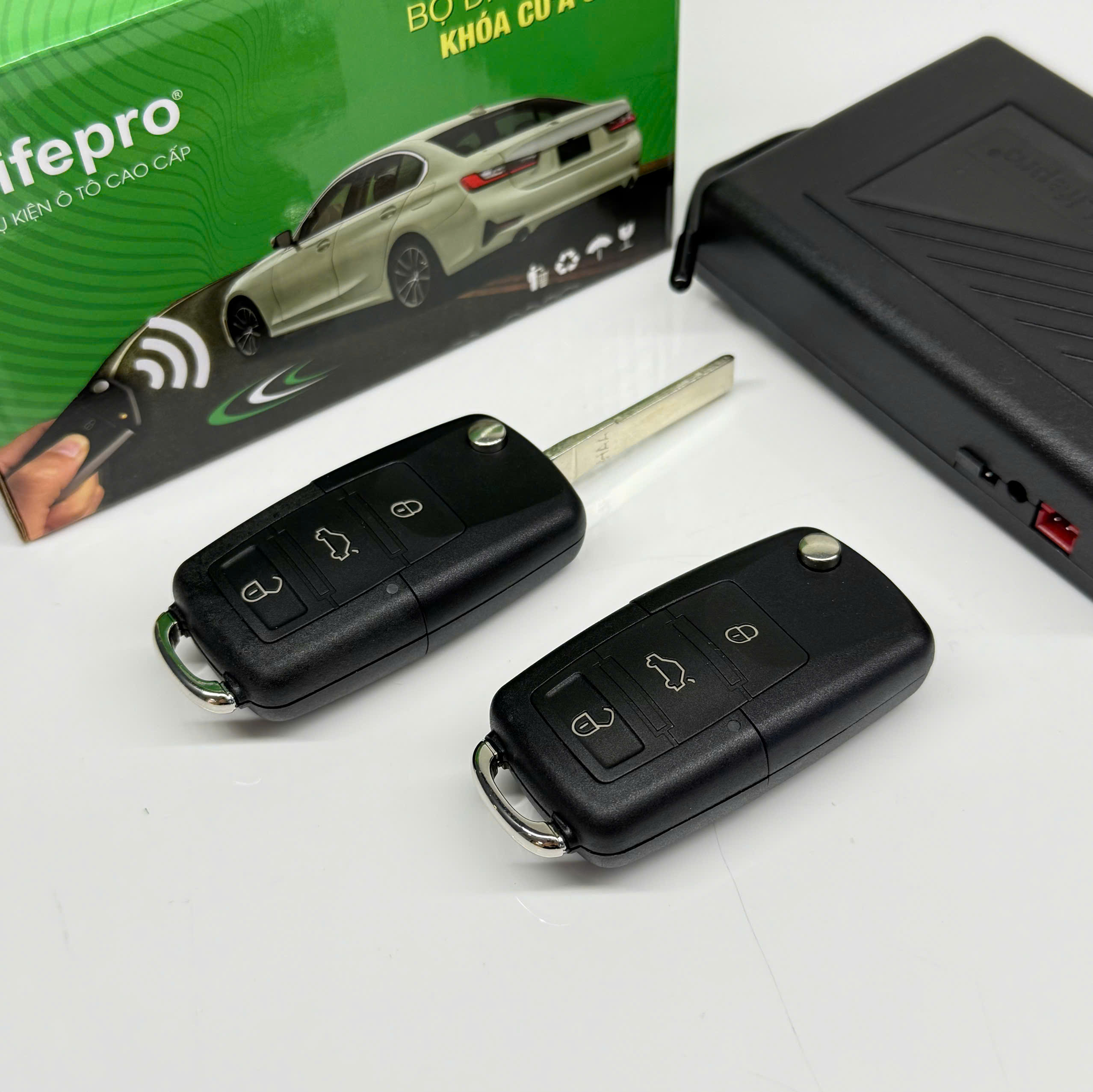 Sản phẩm bao gồm : 2 khiển cửa có chìa, 1 bộ điều khiển trung tâm và dây nối đi kèm Điện áp : 12V Tự động đóng, mở cửa xe ô tô Tìm kiếm xe từ xa Chức năng mở cốp Bảo hành 12 tháng