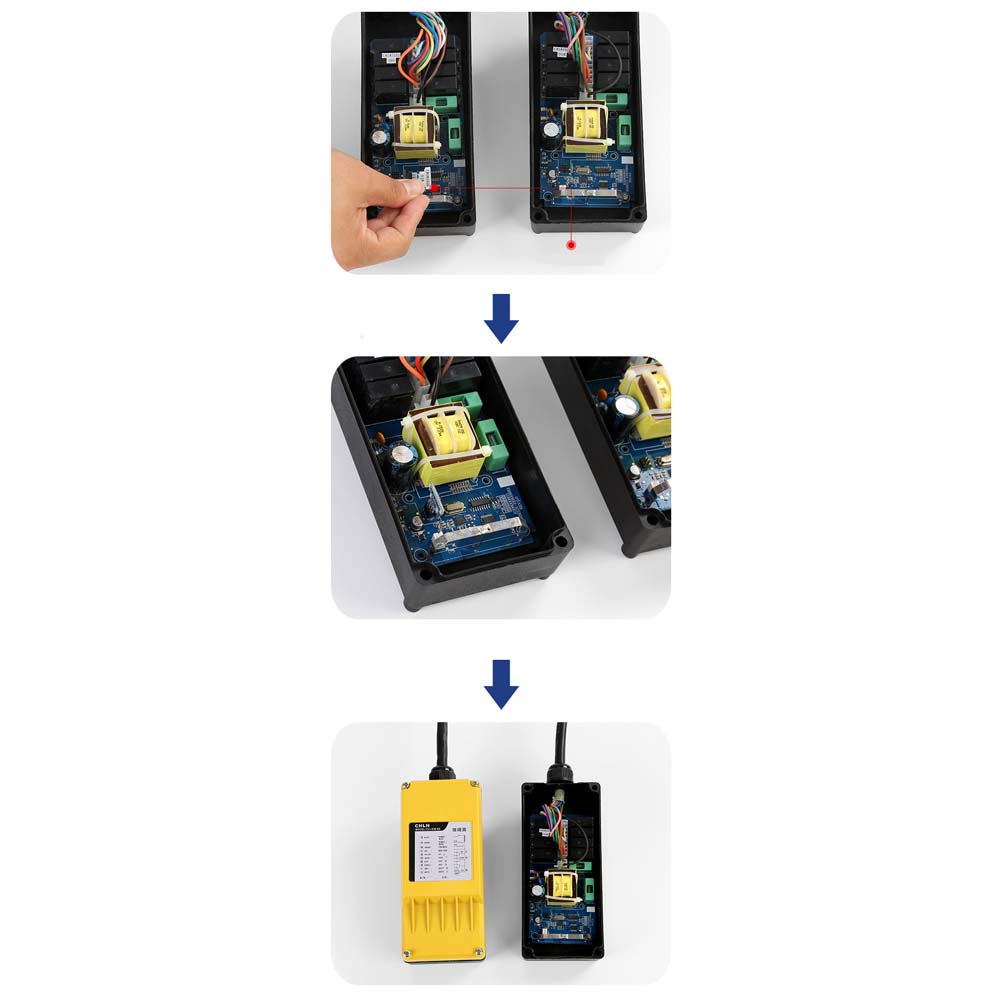 - Chip nhập khẩu của Đức: tín hiệu ổn định và đáng tin cậy hơn. Sửa chữa điều khiển cầu trục ở đâu? Nguyên nhân và cách khắc phục ? Điểu khiển không nhận được tín hiều từ bộ phát: