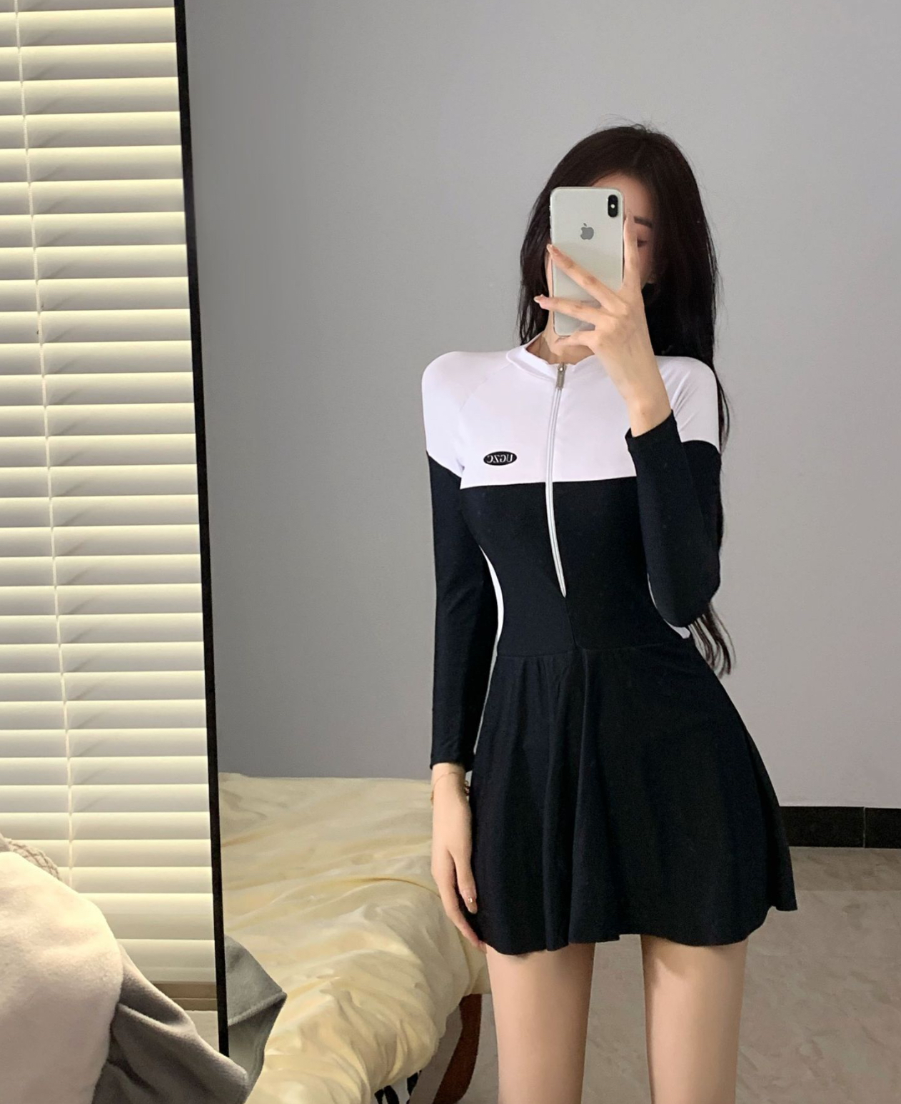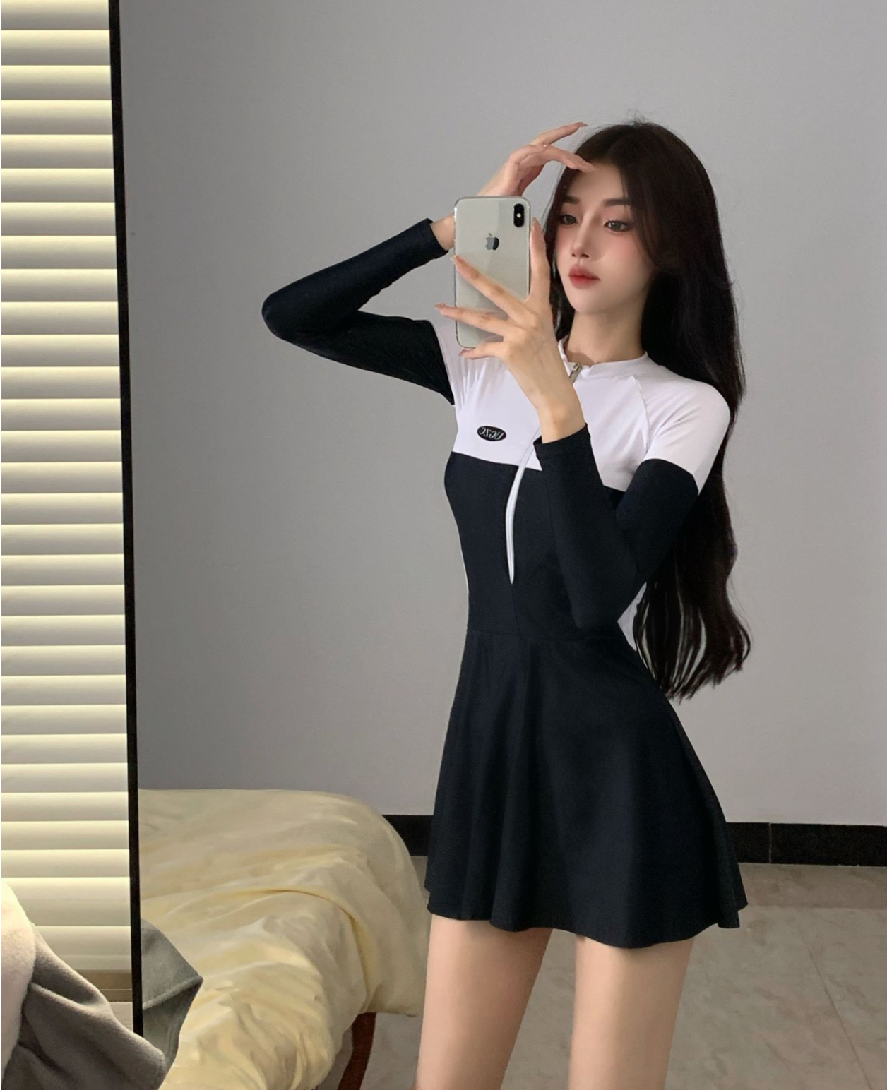 ✨Bộ đồ bơi bikini nữ 1 mảnh kín đáo đi tắm biển giấu bụng váy liền áo dài tay chống nắng - B.27