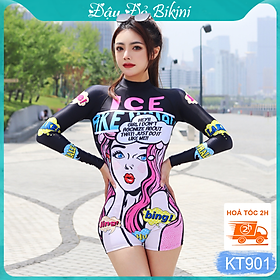 Tự tin khoe trọn vẻ đẹp năng động, trẻ trung và khỏe khoắn trong những chuyến du lịch hè này với Bộ Đồ Bơi Liền Thân Dài Tay Quần Đùi KT901 của Đậu Đỏ Bikini.