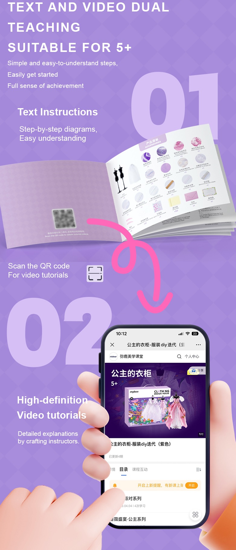 - Ruy băng - viền ren các lại Với hướng dẫn rất cụ thể, chi tiết trong bộ sản phẩm, bé có thể thực hành làm một chiếc váy đuôi cá cực xinh luôn cả nhà ạ Bước 1: Đặt vải ôm sát thân ma nơ canh. Nhét phần vải dư vào giữa lưng ma nơ canh Bước 2: Tiếp tục sử dụng vải tuyn hồng làm lớp váy lót và nhét phần vải dư vào giữa lưng ma nơ canh Bước 3: Thiết kế nơ bằng vải ruy băng và sticker kim cương. Dán nơ phần trước ngực bằng chấm keo Bước 4: Tiếp tục thiết kế phụ kiện như vòng cổ, thắt lưng bằng sticker kim cương hoặc các phụ kiện khác theo sự sáng tạo của bé. Khi bé hoàn thành các thiết kế, bố mẹ đừng ngại ngần trao giải nhà thiết kế cao cấp cho bé thêm yêu thích Trong bộ đồ chơi còn có sẵn 1 showroom trưng bày nho nhỏ - mang đến ngạc nhiên cho bé - bé thật sự nhập vai với việc mình được trở thành 1 nhà thiết kế thời trang chuyên nghiệp - khơi gợi đam mê và thành công cho bé sau này