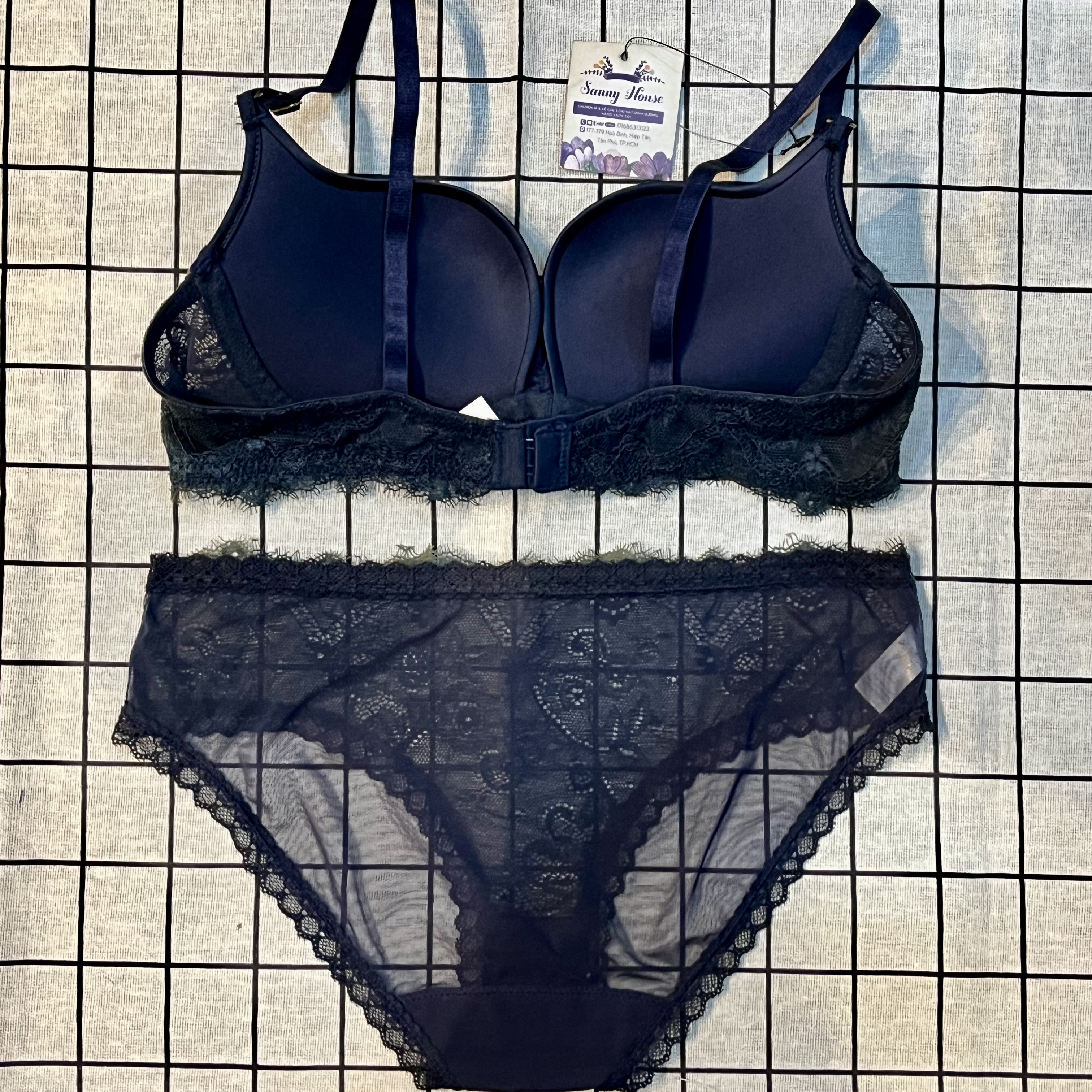 Thương hiệu: Sanny House Tên sản phẩm: Bộ đồ lót KL ren 3/4 Chất liệu: cotton ren cao cấp mềm mịn, co giãn, thấm hút tốt Kiểu dáng: gợi cảm, trẻ trung, hiện đại Màu: xanh đen, đen Size: dưới 60kg LƯU Ý: