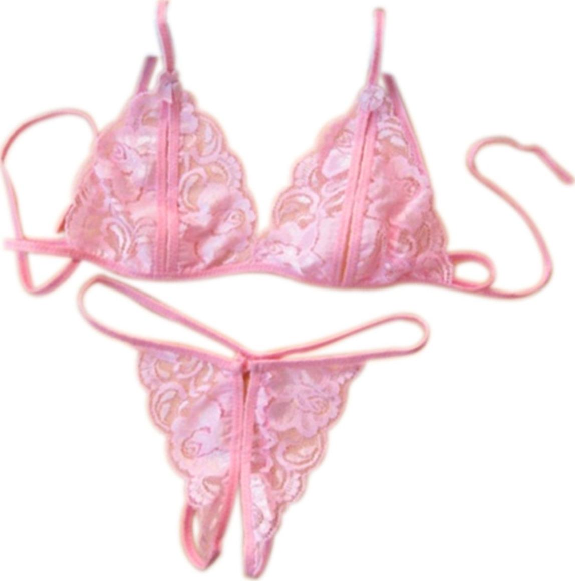 ✨Bộ đồ lót ren xuyên thấu 2 mảnh áo con + Quần lọt khe - Màu hồng