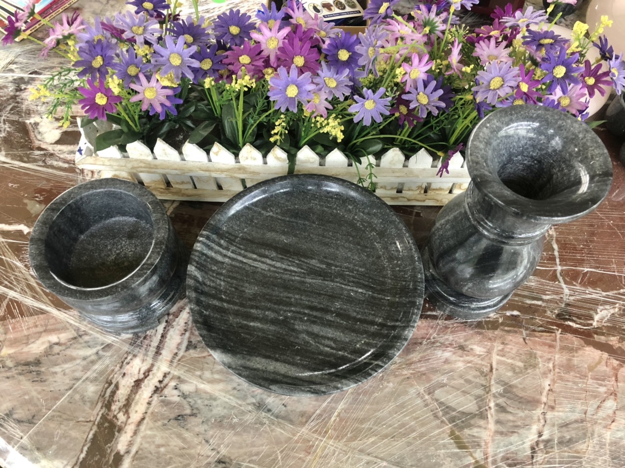 ✨Bộ đồ thờ cúng đá cẩm thạch vân đen