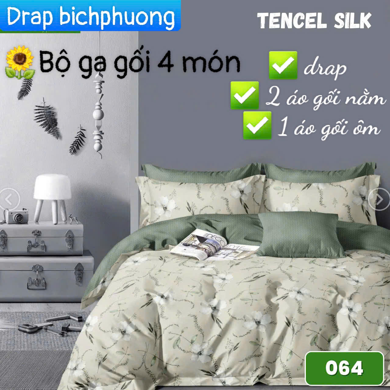 - BỘ DRAP TENCEL GỒM 4 MÓN: • 1 ga tự chọn size {bọc nệm dưới 25 cm}. - . 2 Vỏ gối nằm 50X70cm + 1 vỏ gối ôm 35x100cm{may dây kéo} - ga