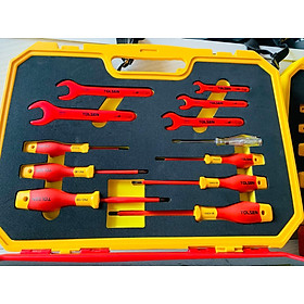 Thương hiệu Tolsen chuyên thiết kế, sản xuất, lắp ráp, cung cấp các thiết bị và dụng cụ công nghiệp dân dụng cỡ lớn và các loại dụng cụ cầm tay đa năng chuyên nghiệp nổi tiếng về chất lượng và hậu mãi tuyệt vời. Ngoài ra, dụng cụ Tolsen nổi tiếng với chất lượng cao và bền bỉ qua năm tháng, được sản xuất bằng các nguồn nguyên liệu chất lượng cao được nhập khẩu từ các quốc gia cường quốc công nghiệp trên thế giới, hoàn toàn chiếm được lòng tin của khách hàng trong nước và người tiêu dùng quốc tế. Các sản phẩm Tolsen rất đa dạng với chất lượng tốt đáp ứng được các thị trường Âu, Mỹ. Gần đây Tolsen đã có mặt tại thị trường Việt Nam. Thông số kĩ thuật -Thương hiệu: Tolsen -Xuất xứ: Trung Quốc -Model: V83718 -Kìm kết hợp nhúng cách điện 200mm; -Kìm mũi dài cách ly 160mm; -Kìm cắt chéo nhúng cách điện 160mm; -Kìm cắt dây nhúng cách điện 160mm; -Tua vít có rãnh cách điện:0,4 2,5 75mm; 0,8 4.0 100mm;1,0 5,5 125mm; -Tua vít phillips cách điện:PH0 60mm; PH1 80mm; PH2 100mm; -Spanners mở cuối cách điện:10 mm, 12 mm, 14mm, 17mm, 19m; -Máy đo điện áp 3.0 70mm; -Dao cáp 50 * 180mm; -Cờ lê điều chỉnh cách điện 250mm