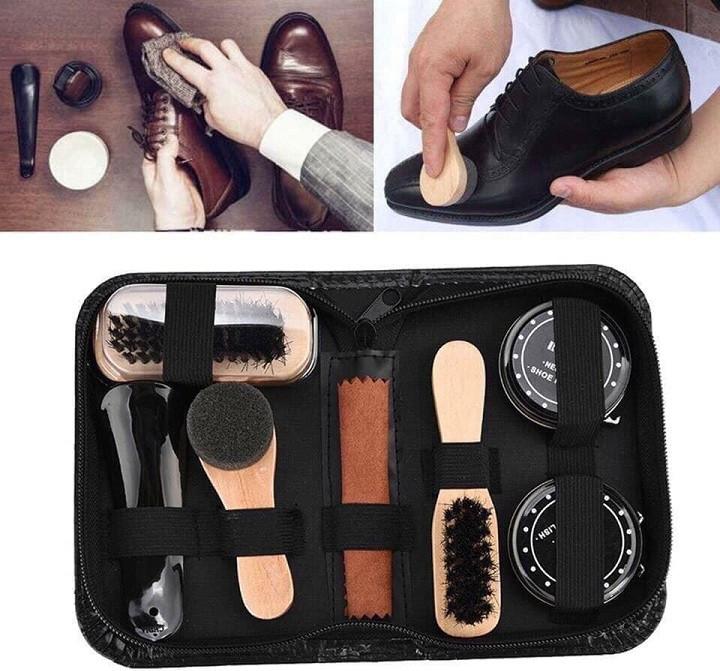 #shorts Bộ dụng cụ đánh giày da 7 món bao gồm xi và đủ bộ bàn chải, có tặng kèm hộp bảo quản