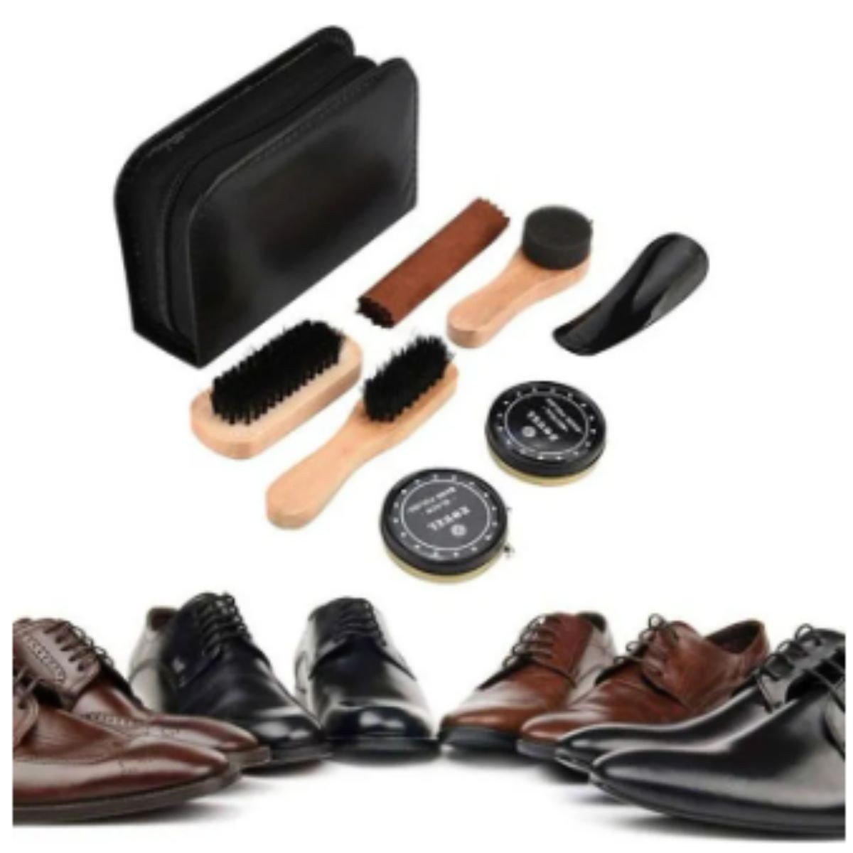 #shorts Bộ dụng cụ đánh giày da 7 món bao gồm xi và đủ bộ bàn chải, có tặng kèm hộp bảo quản