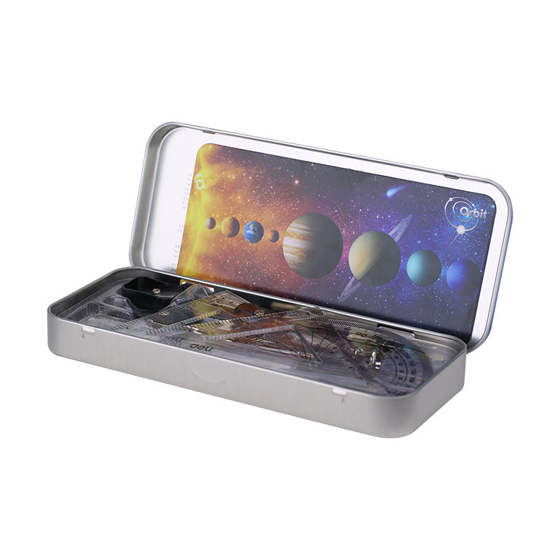 Bộ sản phẩm được đặt trong 1 hộp sắt như hộp bút, bạn có thể dễ dàng đem theo sản phẩm khi đi học hay đi làm.