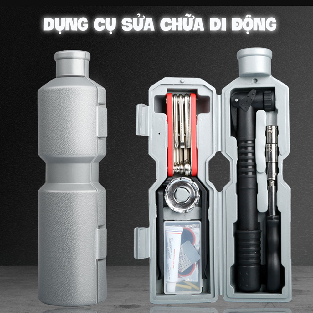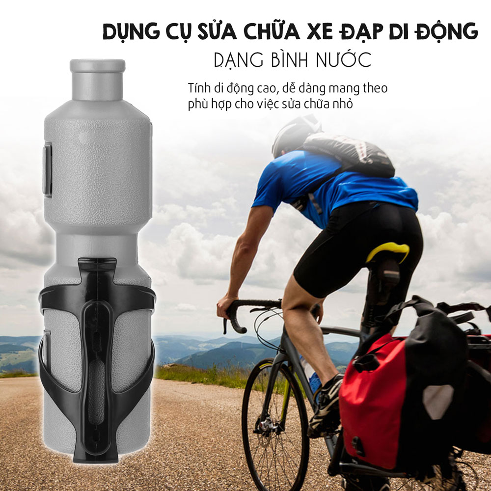 Bộ Dụng Cụ Sửa Chữa Xe Đạp Di Động Bơm Lốp Đa Năng Mini Và Vá Săm Xe Đạp Gắn Sườn Xe (Dạng Bình Nước) MaiLee Bộ dụng cụ sửa chữa này được thiết kế