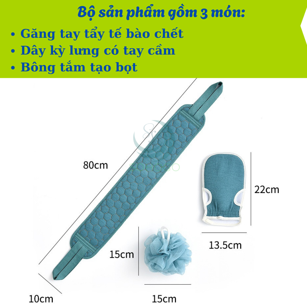 ✨Bộ Dụng Cụ Tắm Tẩy Tế Bào Chết 3 Món – Sạch Sâu, Da Mịn Màng Set tắm tẩy da chết 3 món tiện lợi Combo găng tay – dây cọ lưng – bông tắm tạo bọt