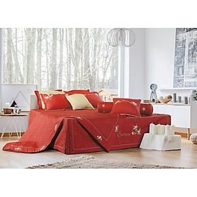 Mua tại TiktokESM19014 thuộc bộ sưu tập 2019 Chất liệu: Modal Xuất xứ : Việt Nam Lấy ý tưởng từ những cành hoa đào nở rộ vào mùa xuân, được thêu trên nền vải đỏ truyền thống, ,mùa xuân, mùa của sự đoàn viên vì vậy bộ chăn ga này sẽ giúp cho phòng ngủ của bạn cảm giác ấm cùng và gần gũi .