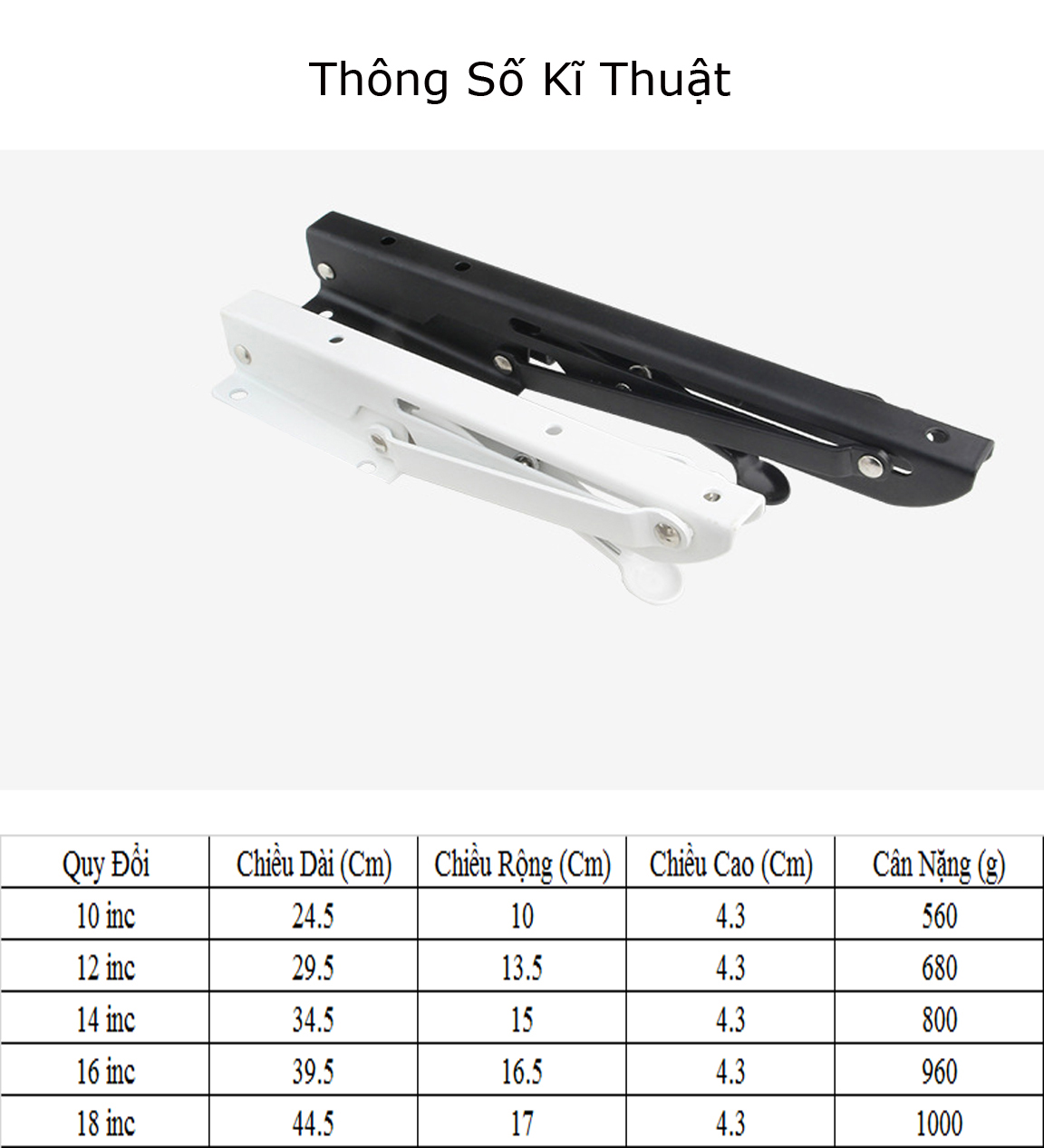 - 1 bộ gồm 2 thanh giá đỡ bàn gấp gọn treo tường, khách hàng lưu ý chọn size phù hợp với bàn