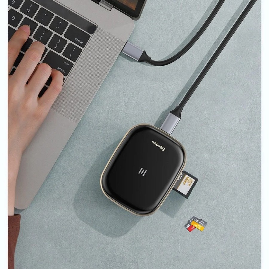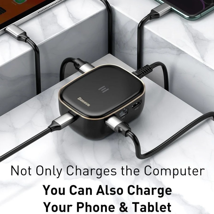 • Tổng công suất tối đa HUB: 60W Chú ý*: Bạn có thể sử dụng bộ HUB mà không cần cấp nguồn cho hub (220V), HUB sẽ lấy nguồn điện từ laptop/máy tính của bạn thông qua cổng kết nối Type C . Tuy nhiên khả năng sử dụng và hiệu suất sẽ bị giảm hoặc thậm chí hub sẽ không hoạt động được khi bạn kết nối nhiều thiết bị cùng lúc và nguồn điện từ laptop/máy tính bạn quá yếu. Hình ảnh chi tiết Hub chuyển đổi đa năng tốc độ cao Baseus Type-C HUB Adapter AC Multifunctional Charger