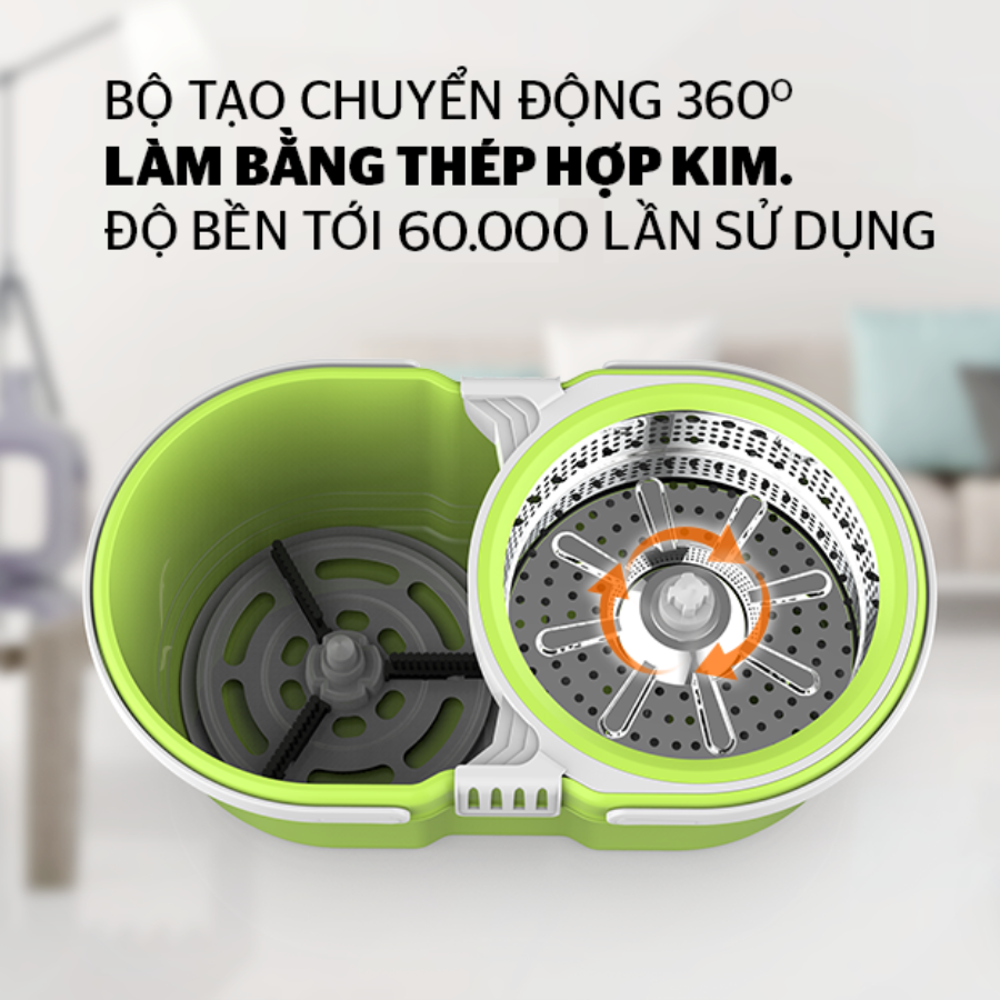 Bộ bàn xoay cây lau với cơ cấu có thể quay tròn 360 độ nhẹ nhàng di chuyển khi lau