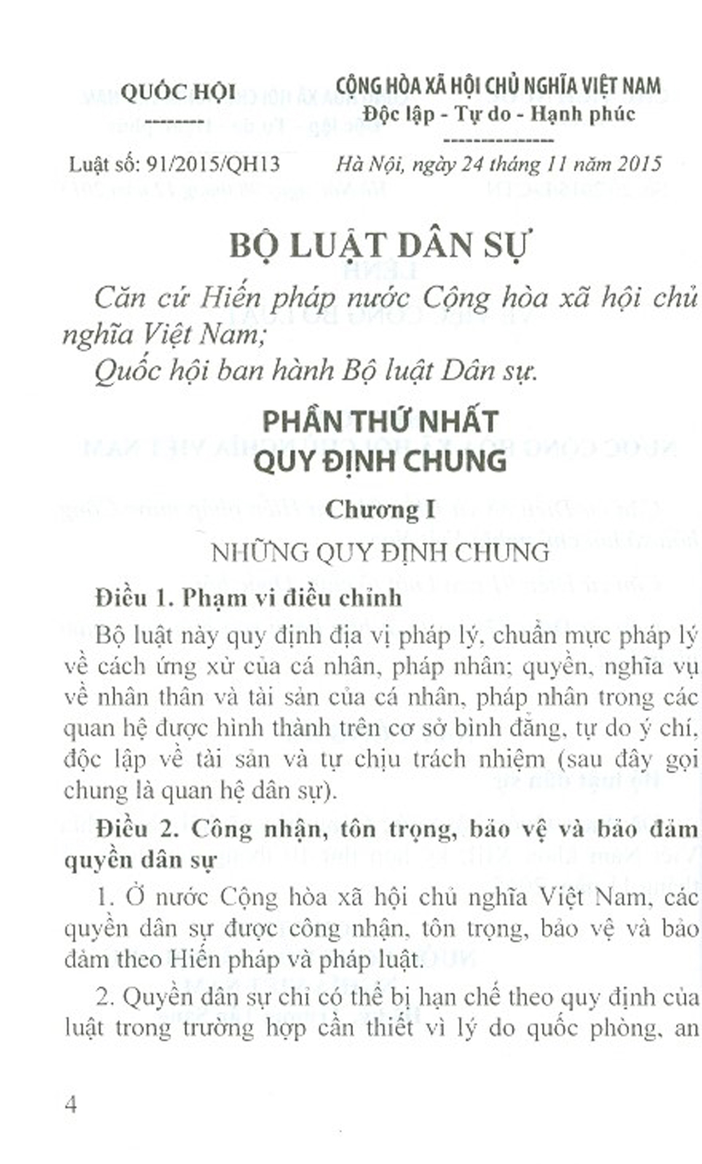 ✨Bộ Luật Dân Sự Nước Cộng Hòa Xã Hội Chủ Nghĩa Việt Nam (Có Hiệu Lực Thi Hành Từ Ngày 01/01/2017)
