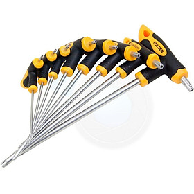 Đặc điểm nổi bật của bộ hoa khế No.8507 TX - Vật liệu thép Crom Vanadi có độ cứng cao. Không có từ tính. - Đầu vặn vít được mạ màu vàng Sâm Panh có độ