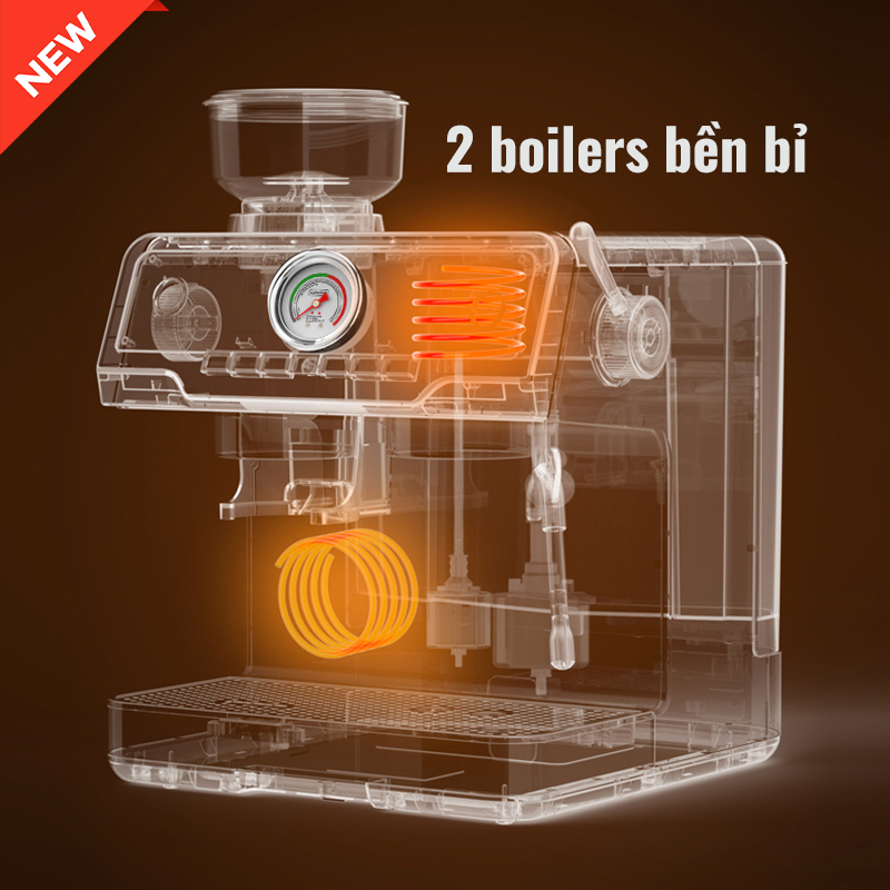 Tất nhiên là không thể thiếu đồng hồ áp suất, nhiệt độ, lượng nước, lượng bột cà phê. Người dùng hoàn toàn có thể kiểm soát để đạt được 1 ly cà phê pha ra chất lượng hoàn hảo.