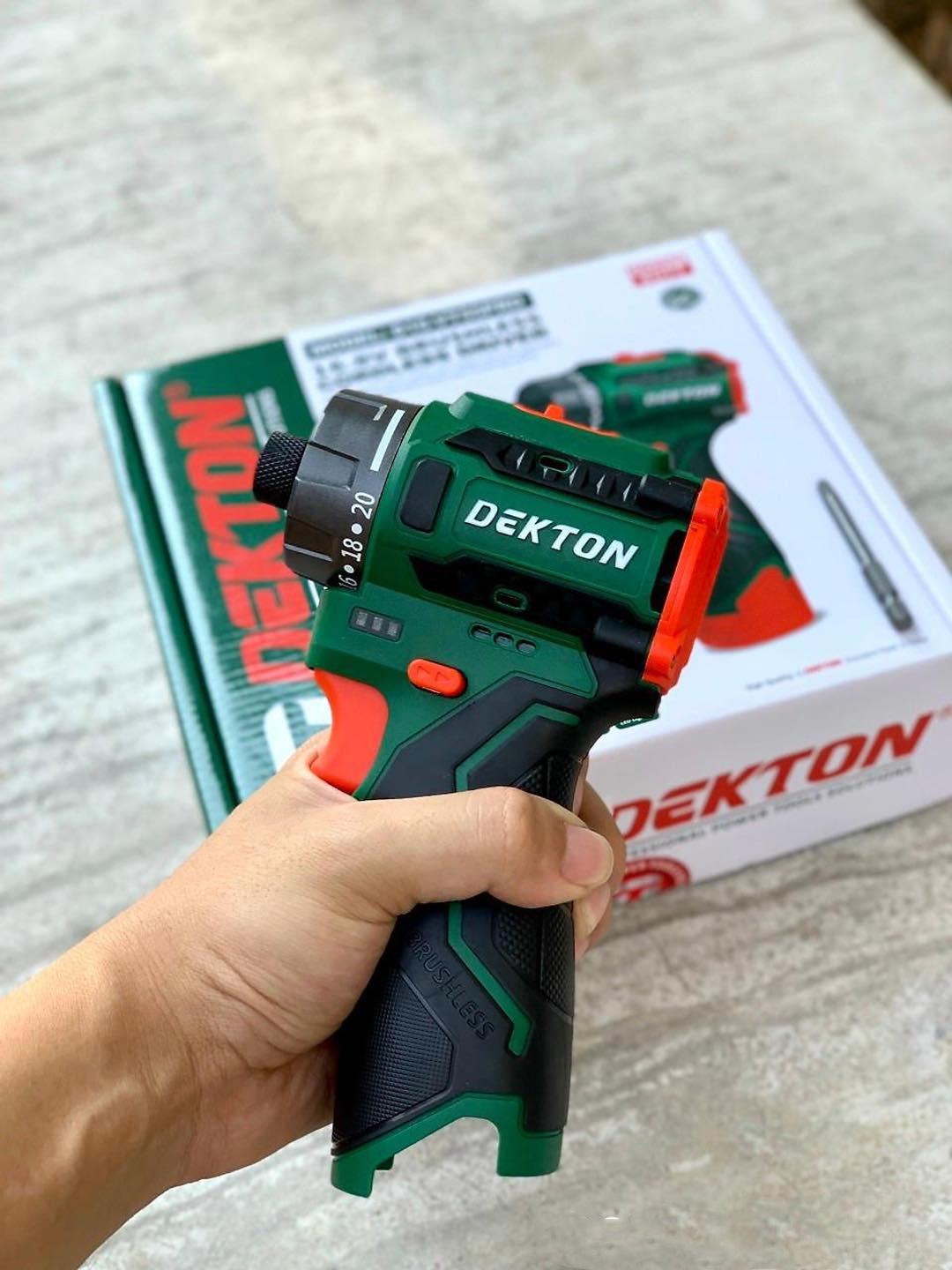 Mua tại TiktokDEKTON là thương hiệu được bảo hộ tại Việt Nam, do công ty Thanh Xuân Nam sáng lập Tất cả các dòng máy dụng cụ cầm tay Dekton đươc sản xuất tại Trung Quốc, theo tiêu chuẩn của nhà sáng lập Việt Nam, sản phẩm Dekton tốt, có giá thành hợp lý khi bán ra cho người tiêu dùng Tất cả các máy dụng cụ cầm tay DEKTON trước khi đưa ra thị trường đều được kiểm tra kỹ lưỡng,được kiểm định về chất lượng, sản phẩm có thiết kế chắc chắn, 100% là Roto được làm bằng đồng, thân máy làm tự nhựa cao cấp.