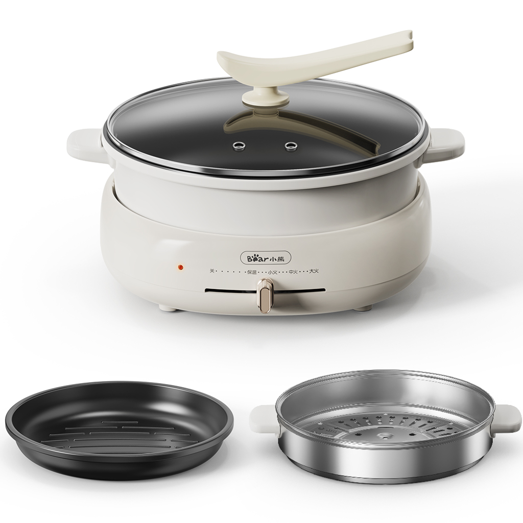 Nồi lẩu nướng đa năng Bear DHG-C40W2 Hấp | Nấu Canh | Nhúng lẩu | Chiên | Nướng