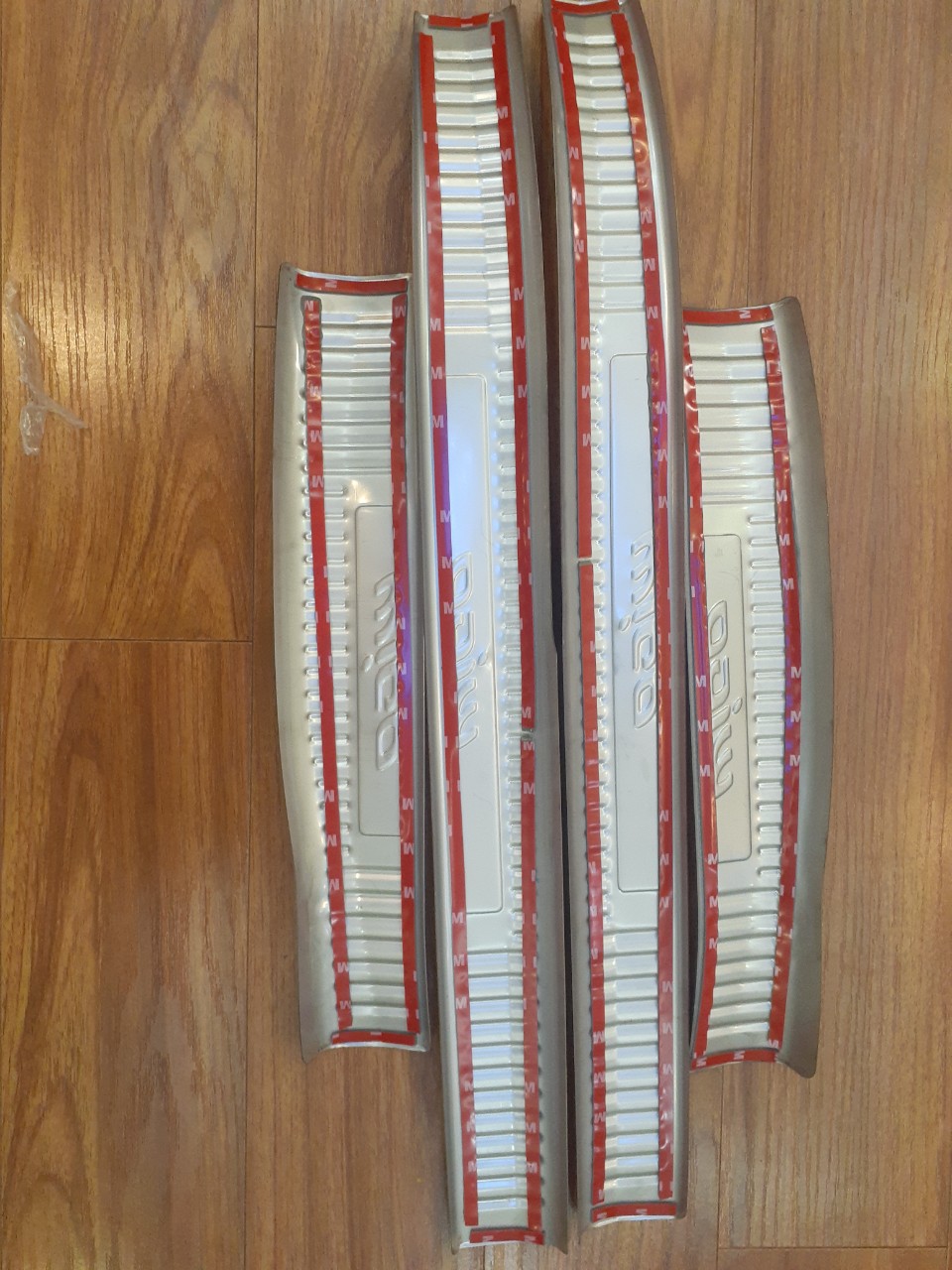 Mua tại TiktokHướng dẫn lắp Ốp bậc, Nẹp bước chân Toyota Wigo trang trí xe hơi BƯỚC 1 : Ướm thử các chi tiết vào vị trí cần lắp đặt, lấy chi tiết vừa nhất chuẩn nhất và đánh dấu lại ( giúp tránh dán sai, nhầm) BƯỚC 2 : Dùng khăn khô lau thật sạch bề mặt dần dán (Chú ý: Phải dùng khăn khô lau bề mặt không dùng khăn ướt hay khăn có dính dầu mỡ, bụi lau bề mặt sẽ làm xước xe ) BƯỚC 3 : Hơ nóng keo 2 mặt có sẵn ở mặt sau sản phẩm bằng máy sấy tóc hoặc máy lửa BƯỚC 4: Bóc lớp băng keo 2 mặt và chuẩn bị lắp ráp BƯỚC 5: Đặt sản phẩm lên vị trí cần dán và thực hiện dán ( Đặt nhẹ từ đầu trên xuống đầu dưới khi đã cảm thấy sản phẩm đúng vị trí mới dùng lực ép vào bề mặt cần lắp đặt )