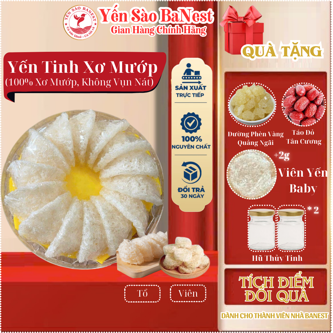 - Yến Tinh Chế Nguyên Tổ (100g) là những tổ yến nguyên liệu ít lông được làm sạch bằng nước tinh khiết cho sợi yến dài và không vụn. Rất thích hợp cho biếu tặng. -