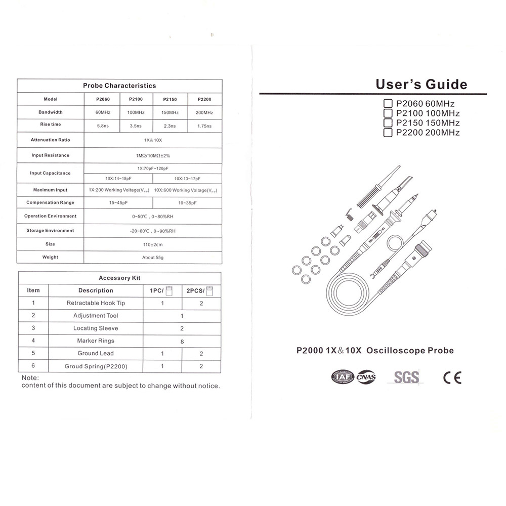 Bộ Que Đo Máy Hiện Sóng Thay Thế P2060, Đầu Dò Máy Hiện Sóng 60mhz 300V DC 1X 10x 1 Đầu Dò, Máy Kiểm Tra Vạn Năng Đầu Dò Dây Dẫn Kiểm Tra