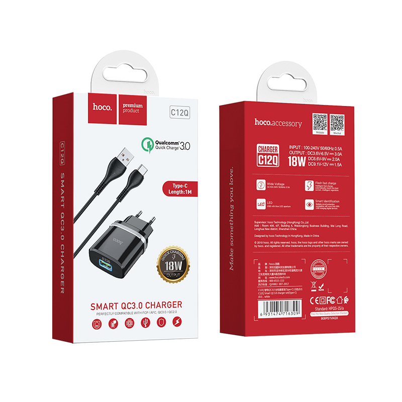 ✨Bộ sạc nhanh Hoco C12Q 18W Type-c Smart hỗ trợ QC3.0 - Hàng chính hãng