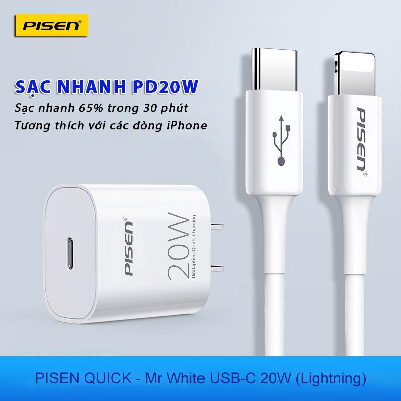 ✨Bộ Sạc Nhanh Mr White USB-C 20W CL1000 Lightning - Pisen TS-C135