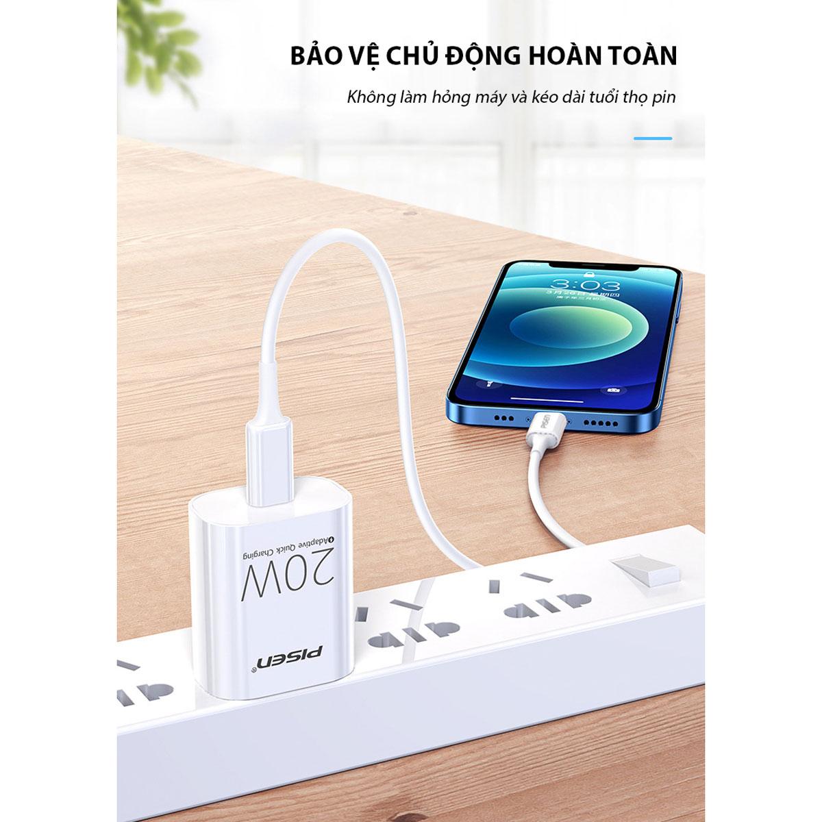 Bộ Củ ( Cốc ) Cáp Sạc Nhanh Chính Hãng 20W Pisen TS-C140 kèm Cáp sạc Type C To Lightning 1M
