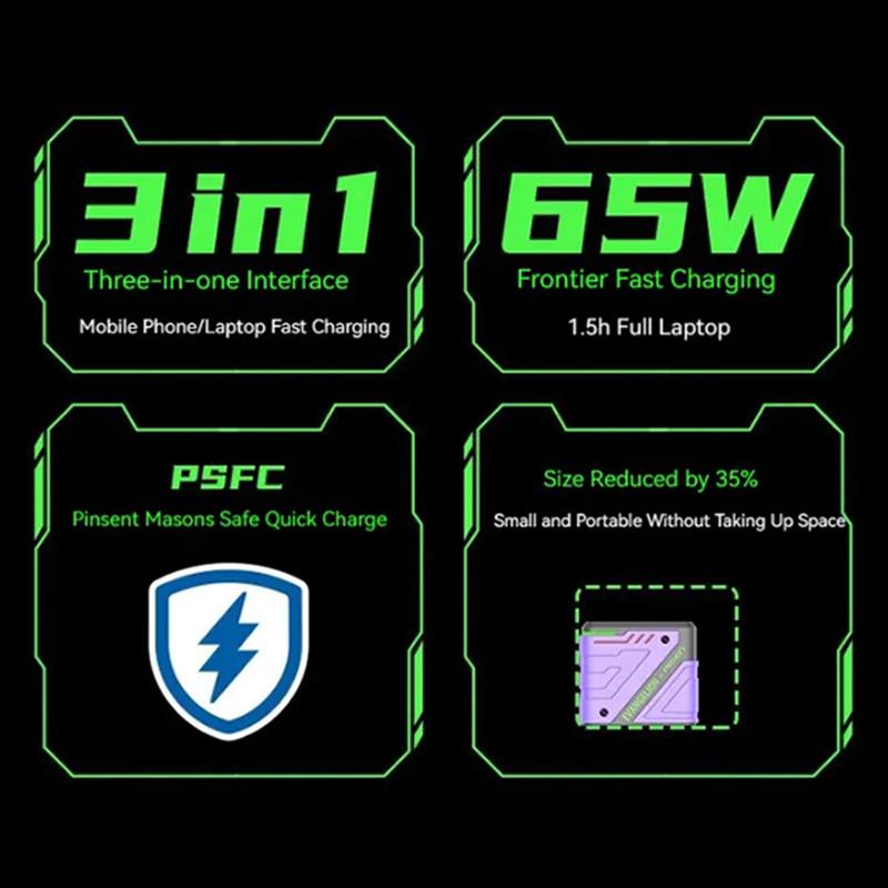- Công suất tối đa 65W: Bộ sạc hỗ trợ công suất lên đến 65W, giúp sạc nhanh chóng cho các thiết bị di động, máy tính bảng và laptop hỗ trợ sạc PD 3.0, tiết kiệm thời gian sạc tối đa.