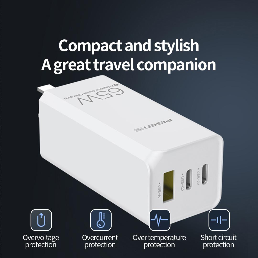 Sạc nhanh Laptop 3 cổng - PISEN Pro GaNUltra 65W 2C1A | PisenVietnam