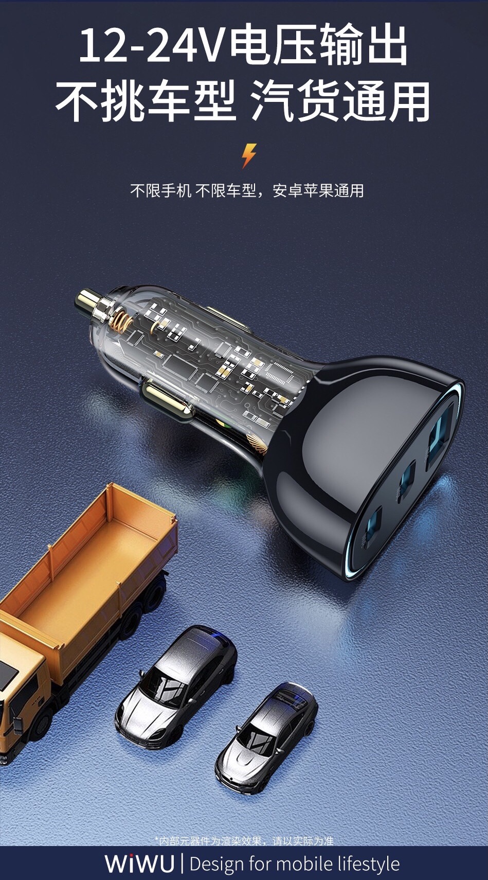 ✨Bộ sạc xe hơi Wiwu 3 In 1 Car Charger Dual USB C + USB A PC700 cho điện thoại sạc nhanh, hỗ trợ sạc 3 cổng một lúc, thiết kế trong suốt - Hàng chính hãng