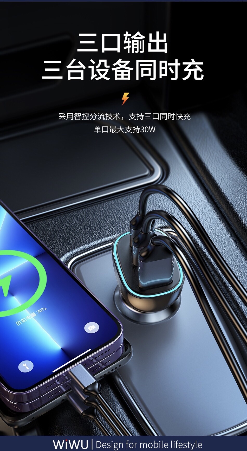 Bộ sạc xe hơi Wiwu 3 In 1 Car Charger Dual USB C + USB A Thương hiệu: Chất liệu: ABS + hợp kim kẽm Đầu vào: DC12-24V Đầu ra (USB): 5V 3A/9V-3A/12V-25A ( Tối