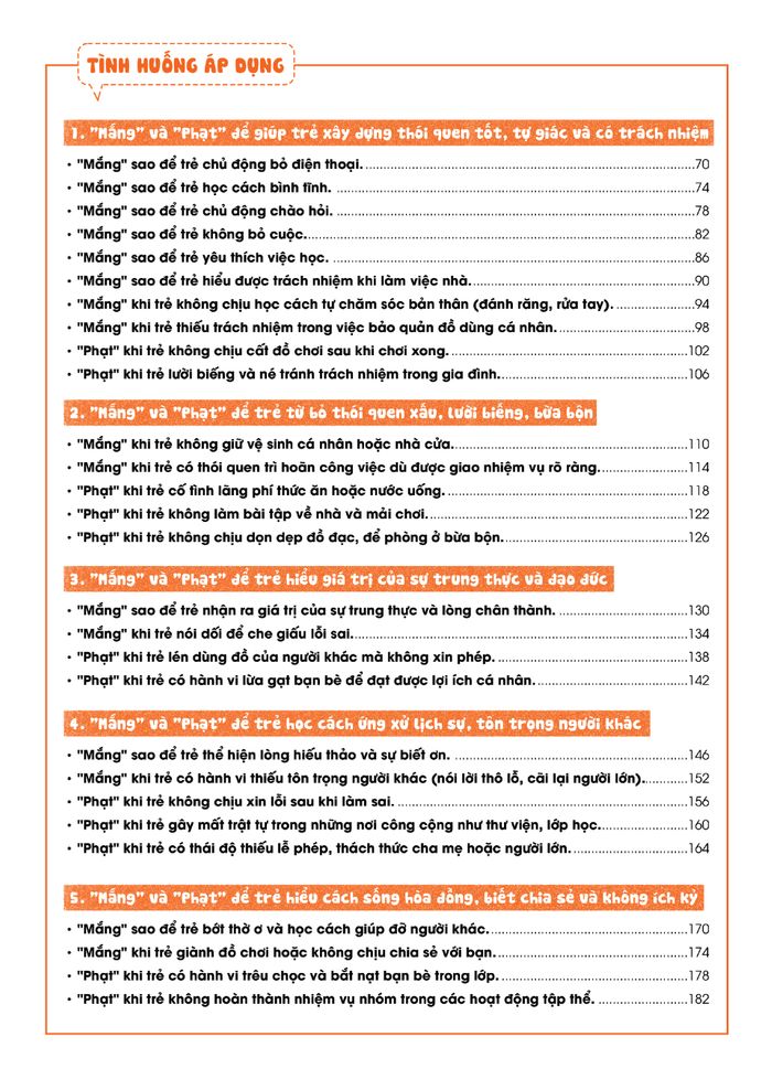 - Kết hợp lý thuyết và thực hành: Không chỉ giải thích lý do mà còn có ví dụ thực tế, mẫu câu cụ thể giúp cha mẹ sử dụng ngay.